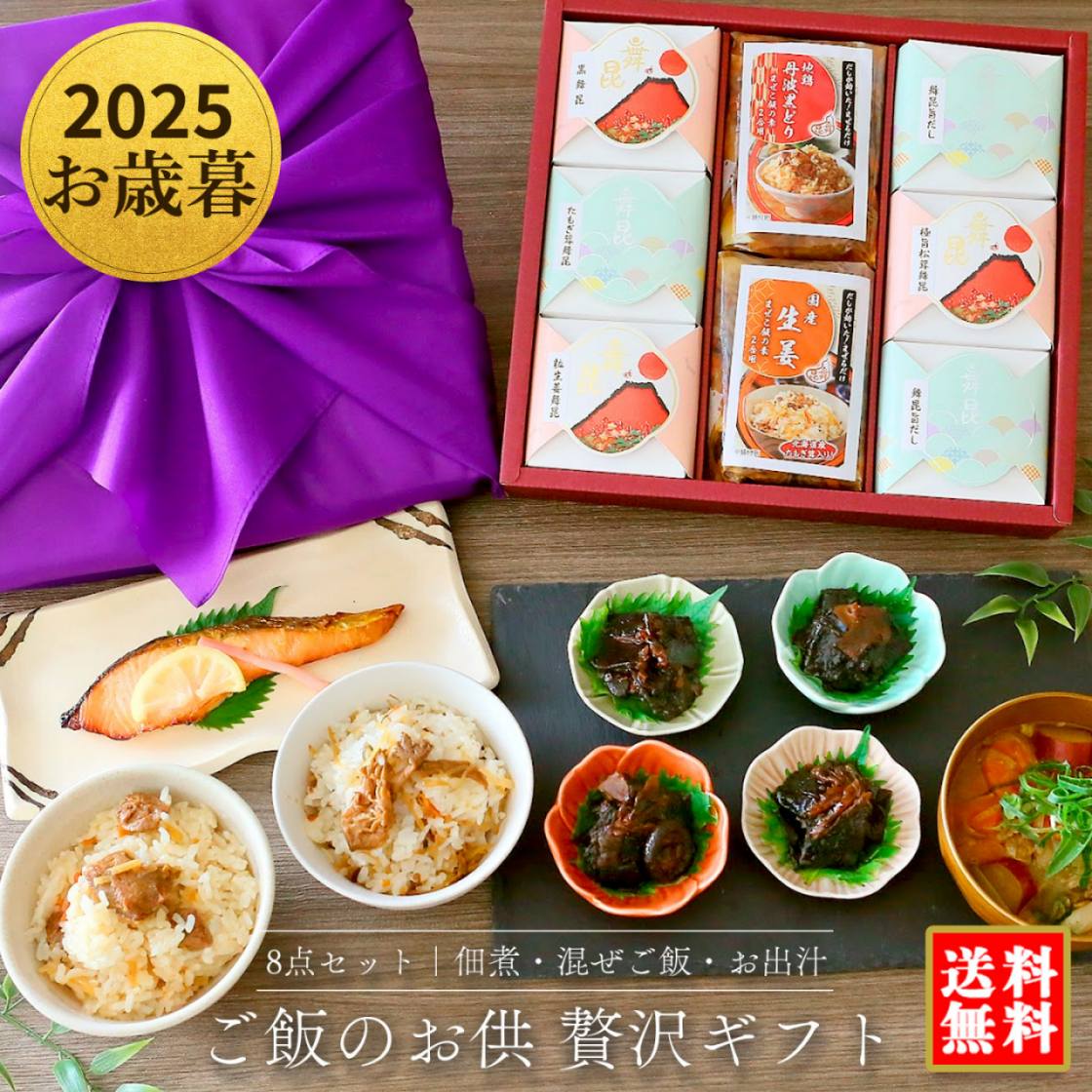 【舞昆 ご飯のお供 お歳暮 ギフト 8点 送料無料】ブラックフライデー300円OFF|お年賀 冬ギフト 贈り物 に|黒舞昆 たもぎ茸舞昆 極旨松茸舞昆 粒生姜舞昆 旨だし 出汁パック 混ぜご飯の素 入り|昆布 佃煮 ご飯のお供 惣菜 食品 セット|常温保存 日持ち|大阪 老舗 高級