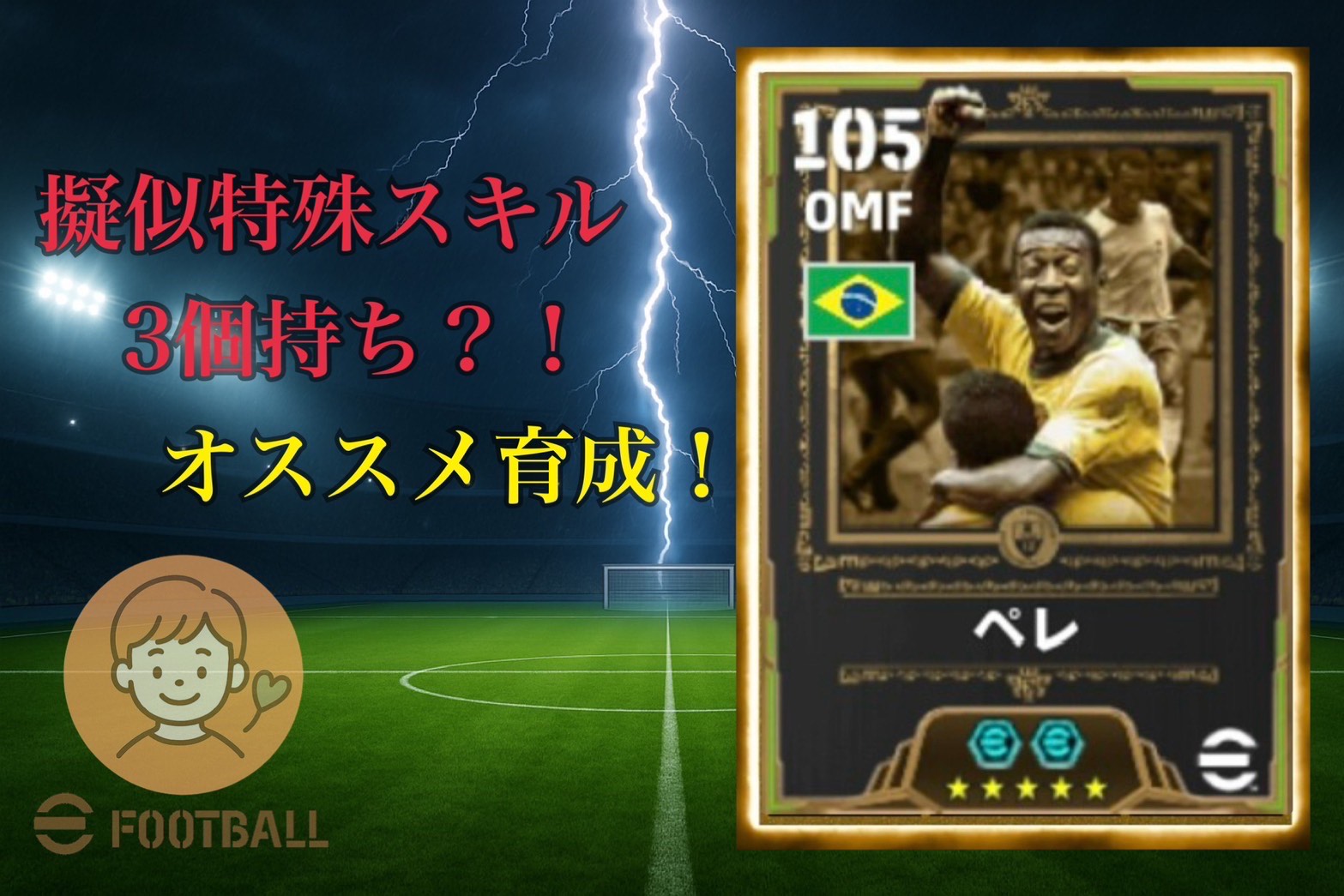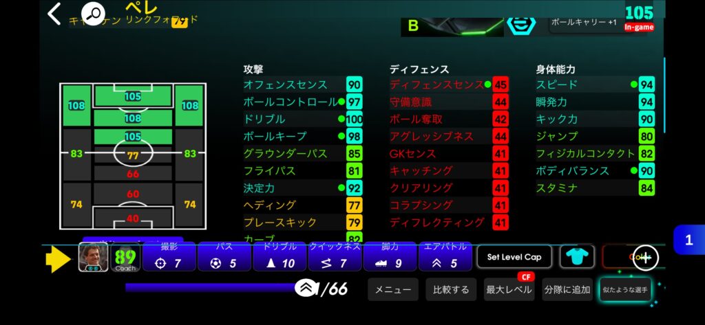 今回はイーフト史上初の特殊スキル2個持ちで登場したペレをドリブル特化育成にして、常時モメンタムドリブル発動してるかの様な操作感に仕上げました。
