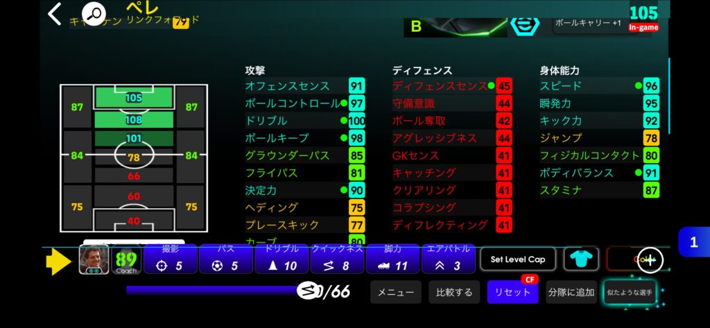 ペレ育成のテーマは、「操作感 × 決定力 × 爆発力」の3軸バランスを極めること。