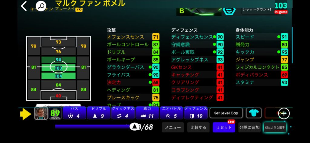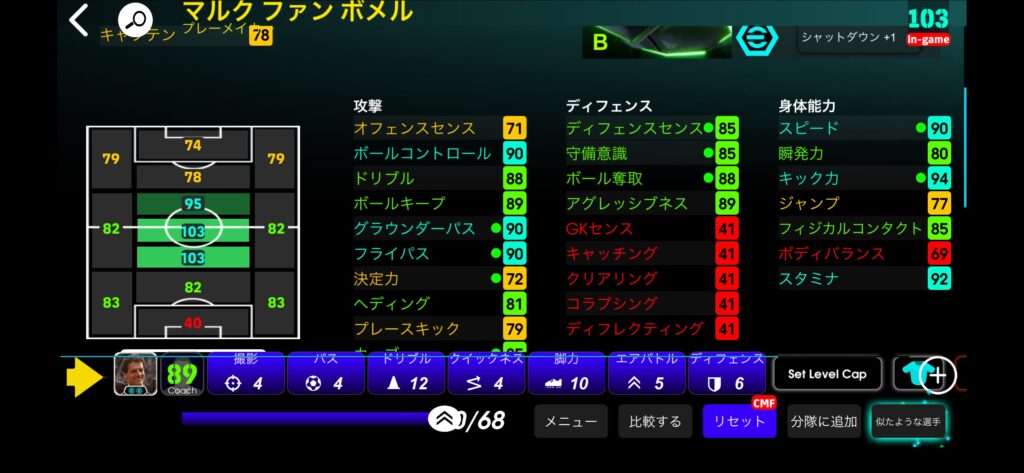 - 特徴:守備・パス・スタミナを兼ね備えた万能型MF