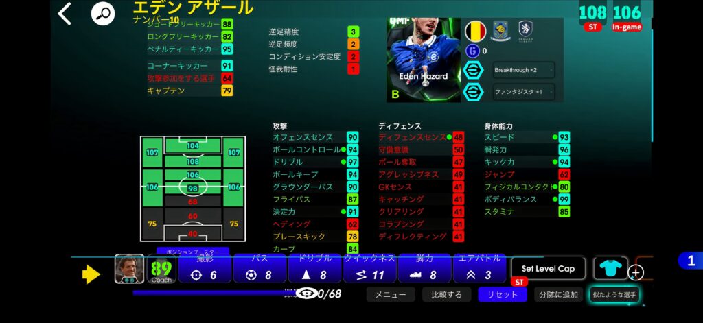 アザールを持っていない人、ドリブル、シュート、パスの全てを高水準でこなせる選手が欲しい方は是非獲得して使ってみてください!