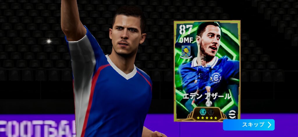 今回登場したエデン アザールは、特殊スキル、モメンタムドリブル×アクセルバーストにより、ゴール前での突破力に優れた選手です。