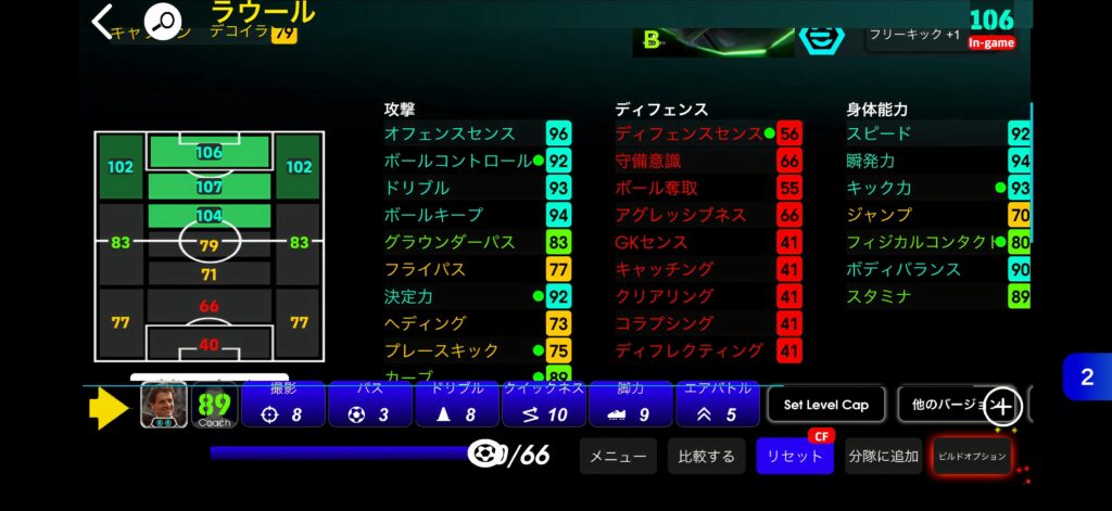 また、デコイランを持っている選手でここまでの能力値の選手はいないので、Div戦で「攻めが上手くいかない」「沼ってしまった」という方はデコイラン持ちラウールは獲得おすすめです!