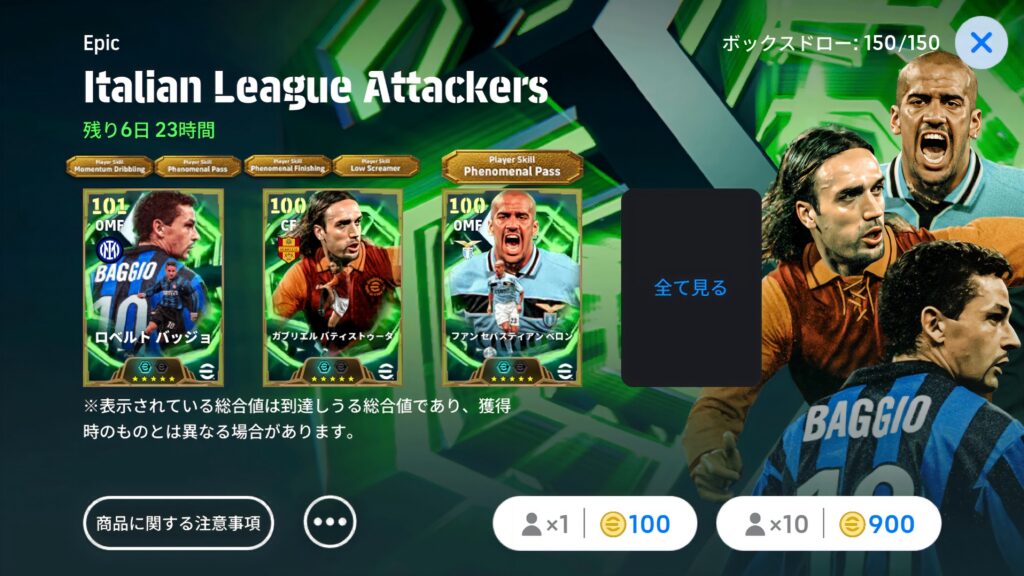- ガチャ名: Epic「Italian League Attackers」